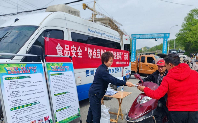 ”息烽县市场监视办理局开展“农村冒充伪劣食物整治”专项宣传暨“你点我检便平易近办事”勾当现场。能帮我测测这菜农残超标不?”检测员麻利地剪下菜样、放进试管、滴入试剂,”近日,他们讲的食物平安学问既听得懂,集市就是讲堂。